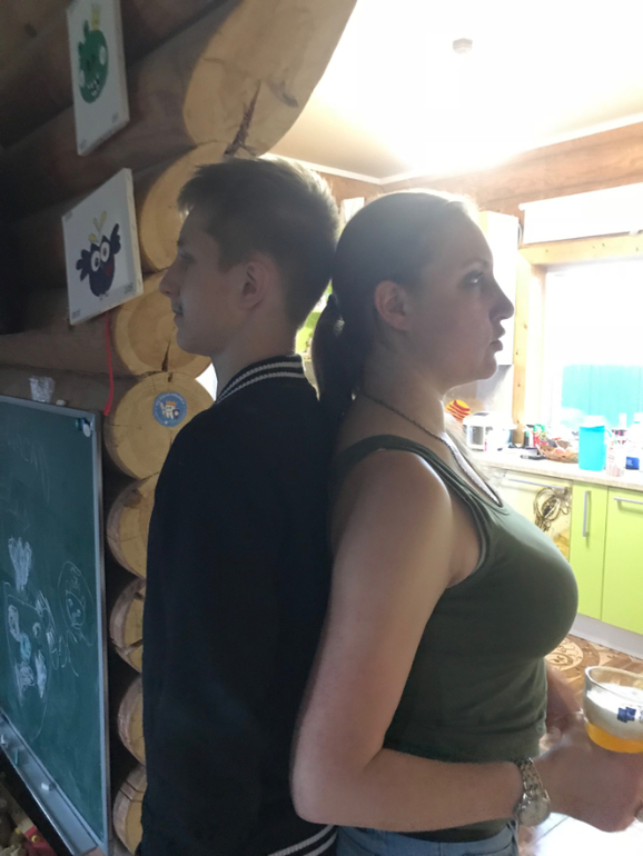 Это с сестрой. Ростом мерится))) У сестры 176 (она в папу, жаль его 46-47 не взяла))). А я -мамин гном.
