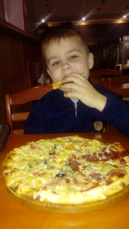 Потом в пиццерию,сегодня муж поехал делать колесо(спускало( ,а мы поели пиццу и мороженое и поехали домой,уставшие и отдохнувшие одновременно)))