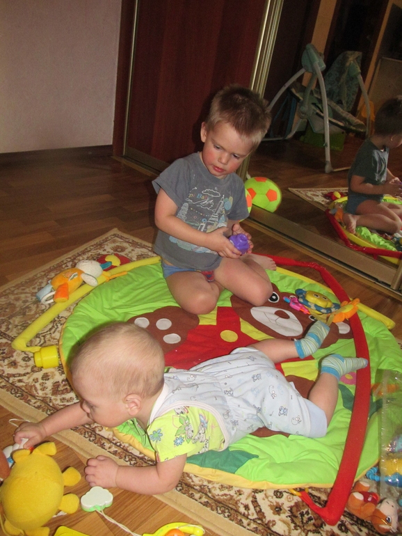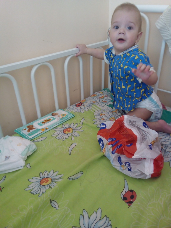 Пока лежали по больницам, в общей сложности месяц и 1 день Руслан начал ползать и вставать у опоры.