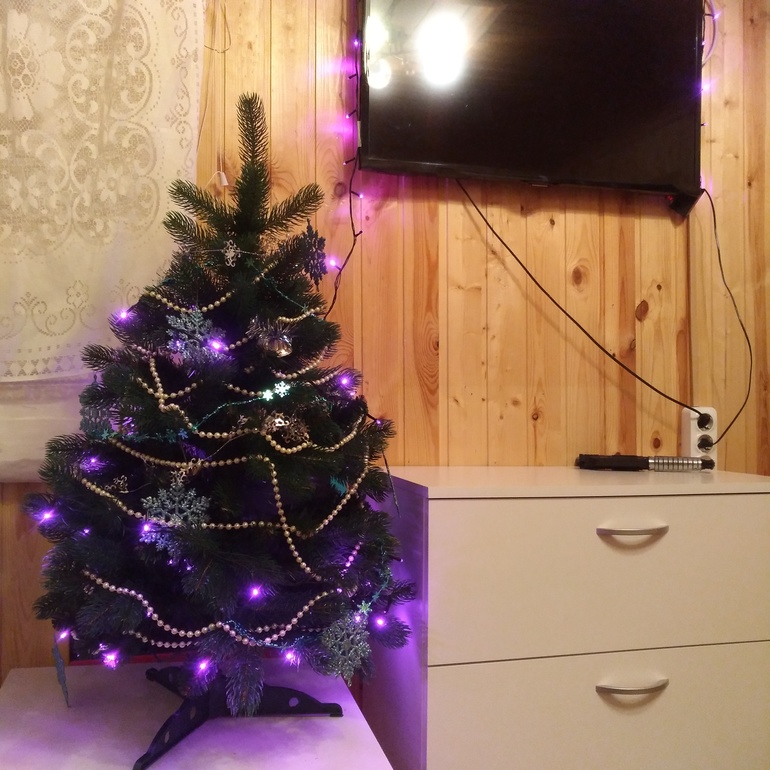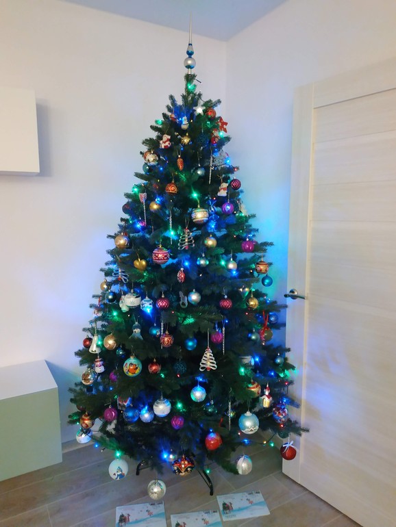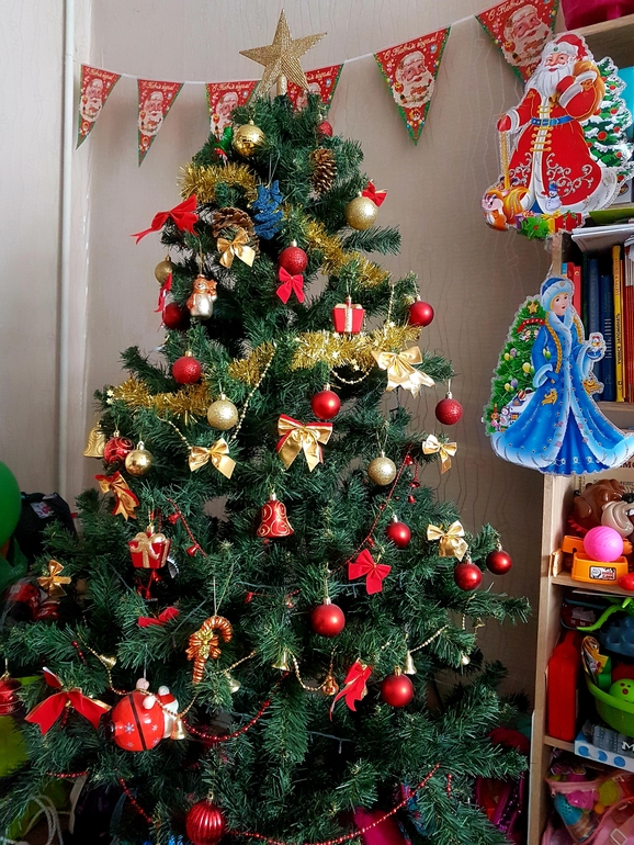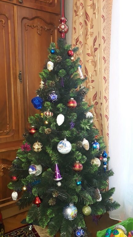 У нас ёлочка уже с середины декабря стоит, дети сами наряжали, ну и украшения соответственно не стеклянные.