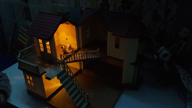 Стемнело, зажгли свет. Не во всех пока комнатах электричество подключили.