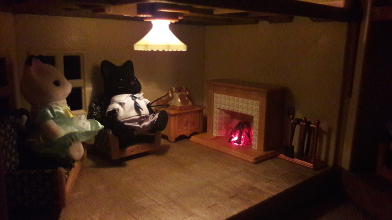 Дети спят, а родители у камина отдыхают от переезда, и обсуждают планы на обустройство дома)
