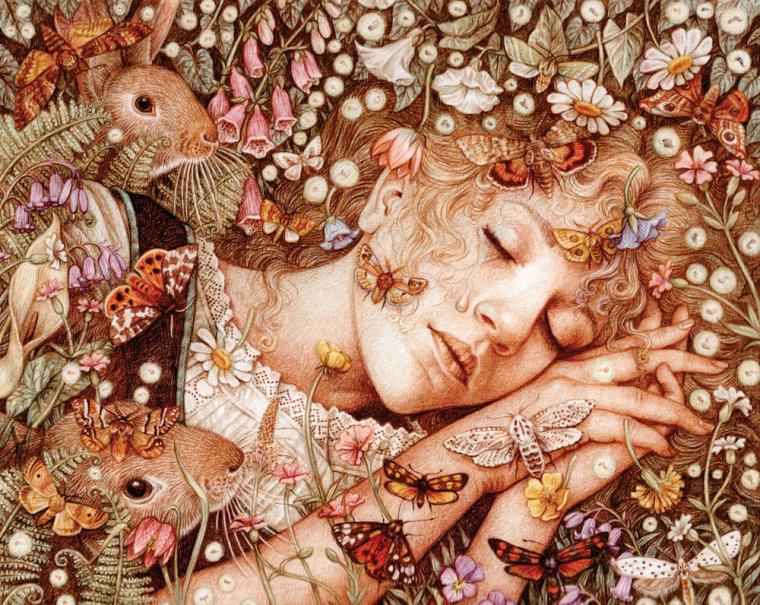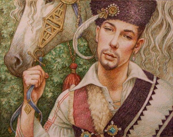 Я очень любила в детстве сказки. Зачитывалась ими, и русские народные, а еще, все, наверное, помнят, был такой толстенький сборник: сказки зарубежных писателей, с такими жутковато-загадочными силуэтами на обложке. Очень любила его. Моя любимая сказка Андерсона из этого сборника - Дикие лебеди, мульт наш тоже очень нравится. И вот я хотела Лиле ее прочитать. Стала на Лабиринте смотреть. У меня есть пунктик: если очень нравится какое-то произведение - хочу его отдельно иметь в библиотеке, не в сборнике. А выбор сейчас!!! Золотой век книгоиздания. В общем, Лебедей в Лабиринте оказалось много, я долго выбирала иллюстрации, и запала в результате на работы художницы Ивонн Гилберт. Не могу сказать, что сразу была без ума от них - слишком необычные. Техника интересная у художницы - цветные карандаши. Но я их рассматривала и все больше очаровывалась. Они как-то и волшебно сказочны, и одновременно современны, Элиза напоминает Ботичеллевских красавиц, а у Короля вдруг лицо Джонатана Майерза))).