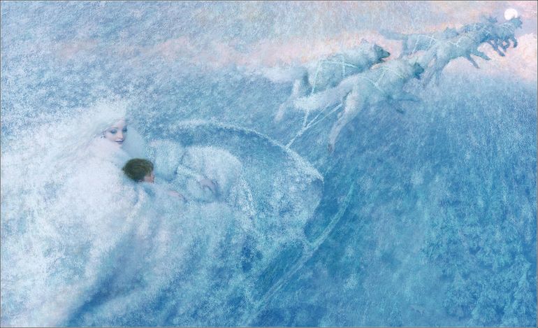 А вообще для меня, взрослой тети, эта сказка оказалась открытием, как и Русалочка. И голос мой в процессе чтения периодически предательски подрагивал от подступавших слез. Гениальные сказки! Я впервые читала эпизод, когда на Герду надвигается армия огромных страшных искаженных снежинок - слуг Снежной Королевы, и босая замерзающая девочка начинает шептать Отче Наш, и вокруг нее появляются ангелы, и защищают и согревают ее... А заканчивается сказка цитатой из Евангелия: Если не будете как дети - не войдете в Царствие небесное! В общем теперь хочу порыться в интернете, почитать литературоведческий анализ Снежной Королевы)))