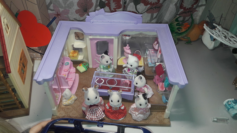 Она аж пищала от счастья.))) Наше увлечение Сильвашками продолжается буйным цветом). Играет каждый день. И одна, и с Гришей), вечером обязательный ритуал укладывания спать). Гришка кстати тоже очень любит в них играть, и один тоже играет часто, но ему пришлось купить свой маленький домик и кроликов, и конечно, машину))).