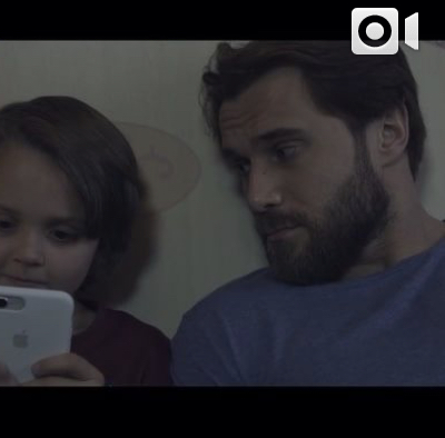 А это другая работа , где Кирилл , не отрываясь от телефона, говорит своему экранному папе:» Когда я вырасту, я тоже вас с мамой никуда брать не буду».