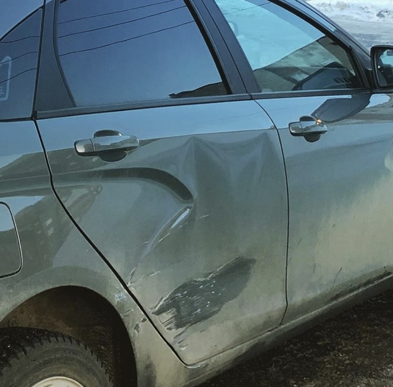 Недавно муж въехал легонько в Ладу, у нас на бампере краска треснула и все, у Лады - вот что