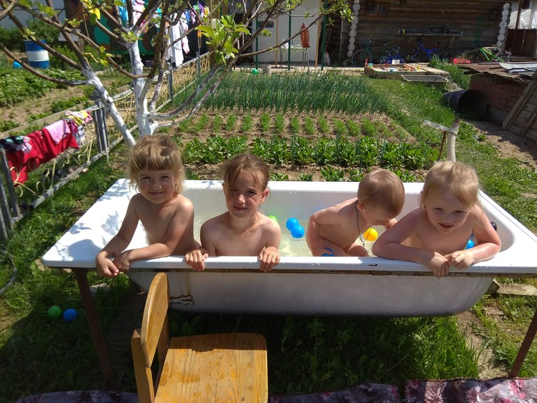 Вот единственные два квадратных метра где всех можно собрать одновременно (у старшего свое место для купания), иначе разбегаются))) часто чувствую себя погонщиком гусей 😂😅