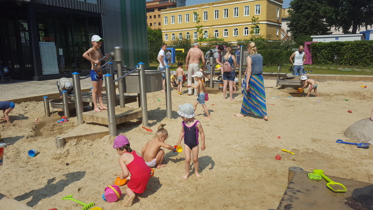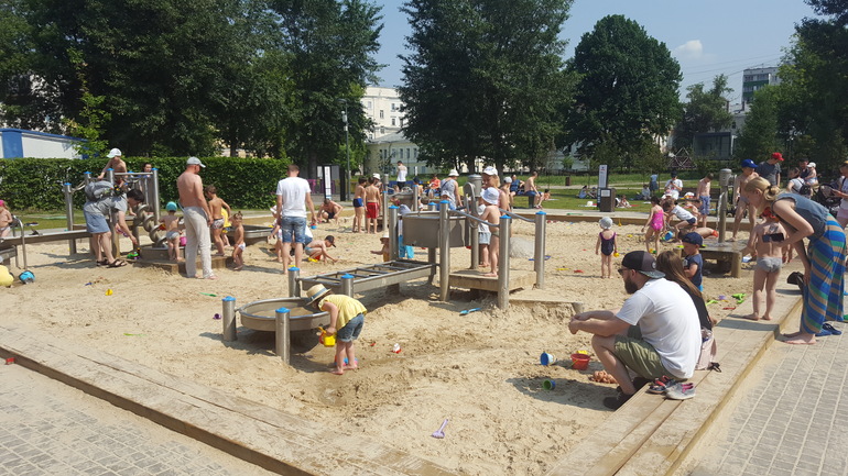 Песочная зона и водная рядом, все краники в песочнице работают, детям очень нравится. Берите купальники, шлепки и полотенца. Туалет и комната матери и ребенка имеются, рядом.