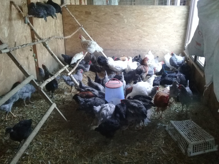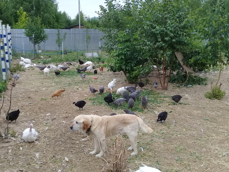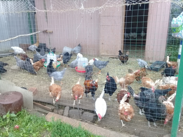 Это наши несушки с молодками этого года, очень ждём яиц