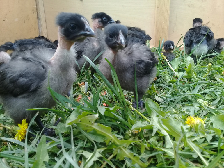 Это курочки и петухи от наших кур, которых мы инкубировали в первую очередь