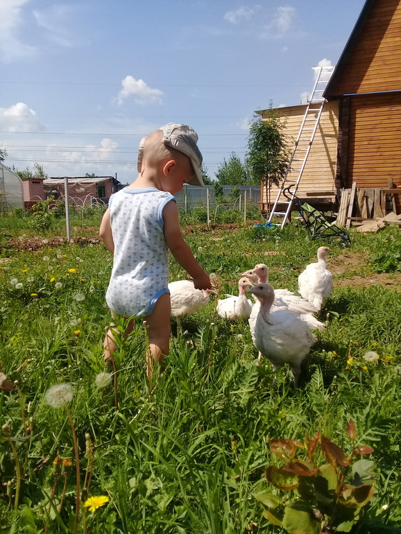 Как я уже раннее писала, купили мы сами в этом году инкубатор, потренировались на яйцах от своих несушек, далее купили партию Доминантов (оказались не микс как обещали), партию Бройлеров, Голошеек.В прекрасном хозяйстве купили Индюшек пород Северокавсказская Бронза, Северокавказское Серебро и Белую Широкогрудую,а так же Гусей Линда (гуси сами вывели гусят). У знакомого взяли суточниками Цесарок, Индюшек Биг-6, Мулардов, Индоутят (сама уточка выводила).У знакомой приобрели Кроликов.