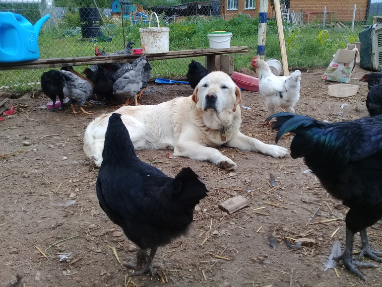 А это Космос, живёт прям в курятнике