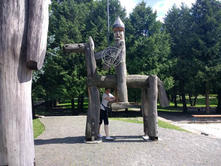 Отдых многодетных семейПосле первых двух насыщенных дней, захотелось немного покоя и передышки, тем более что по идее должен был начаться шахматный лагерь. Но это не про нас, а лекция в лагере должна была быть аж 19.00, то мы решили отправиться на гору. Я неправильно проложила маршрут и мы по нему пытались проехать на смотровую площадку горы Тростян. Оказалось, что по выбранному маршруту мы не проедем, так как еще весной размыло дорогу, а лихачить и переезжать брод на машине я не разрешила. В общем покатались по близлежащим селам и поехали назад обедать в понравившейся кафешке. А потом пошли искать вожделенную детскую площадку. В реальности мне хотелось к огромным деревянным статуям:
