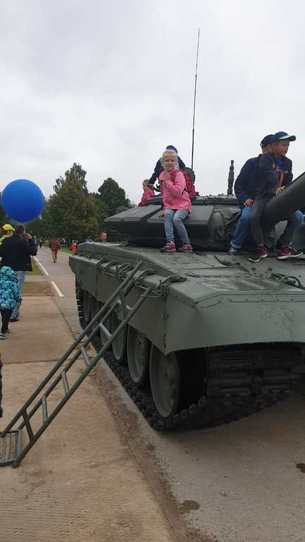 Отдых многодетных семейВ этом году проходил в этом году с 3 по 17 августа на подмосковном полигоне в Алабино. Дедушка наш смотрел это дело по телику, и постепенно в это втянулись и дети, включая Лилю! До 2х часов ночи смотрели, делали ставки, я спать не могла загнать. Потом обсуждали с дедом, что надо бы на будущий год съездить живьем посмотреть. А тут меня осенило: че собственно год ждать? Полезла в интернет, оказалось, что в ближайшую субботу финал. Оставалось 2 дня. Думала, что билеты будут неподъемными, но оказалось, что трибуны 800-900р, а вип - 1500. Но к сожалению, на финал на трибуны билетов уже не было, за 2 дня то, только входные, без мест. Но мы все-равно решились ехать, понадеявшись, что возможно в кассе в субботу сможем еще что-то взять. Прогноз на субботу был кошмарный - сплошной дождь, мама нас всячески отговаривала, она оставалась на даче с Гришуткой. План был такой: в 10 утра выезжаем с дачи, едем в Зеленоград, забираем нашего папу и все вместе в Алабино. Ну я конечно сходу лажанулась, поехала по новой платной ленинградке в Завидово, и после терминала повернула не в ту сторону! В общем, мне пришлось чуть не до Твери доехать, чтобы развернуться в сторону Москвы! Потеряли почти час на этом. На вьезде в Зелик меня тормознули гаишники (второй раз в жизни!), но с миром отпустили. Забрали мы папу и поехали. Ох, долго ехали, 2,5 часа от Зеленограда, и погода все мрачнее и мрачнее. По плану в 15.00 должно было быть авиашоу, мы на него к сожалению не успели. Когда заехали на парковку, увидели только звено истребителей, которые делали вираж. Парковка просто гигантская, но мы были в шоке, когда увидели, что там всего 2 будочки касс, к которым стояла очередища! Они работали ну очень медленно. Простояли мы как дураки час, понятно, что были уже только входные билеты, надо было брать в интернете. Билеты обошлись 2 взрослых по 400р, 2 детских по 200, а Лилю пустили бесплатно. Дальше рамки с металлоискателями и посадка в автобус. До самого полигона ехать минут 10 на спецавтобусе, их много, ждать не пришлось. В итоге мы прибыли к самому началу заезда в 16.30, хотя по плану хотели к 13.00. Народу было очень много. Много с маленькими детьми и с колясками, экстремалы))). Место заезда представляет собой огромное поле с различными препятствиями и стрельбищами, на заднем плане река. Все очень живописно. На небольшой возвышенности находятся трибуны, и ограда, вдоль которой стоят зрители. Перед трибунами огромный экран, где конечно все в подробностях хорошо видно. Мы нашли удачную точку, где было видно большую часть трассы, и смотрели оттуда. Мне напомнило это автомобильные гонки, где зрители стоят вдоль трассы и ждут, когда в секунду перед ними пронесутся гонщики). В целом мне понравилось, очень зрелищно было, за холмом вдруг взметывался столб воды, на экране мы видели что танк ныряет в ров с водой, и через несколько секунд он выскакивал из-за горки на бешенной скорости, буквально взлетая над ней, дальше мы видели, как он объезжал специальные препятствия, потом мчался мимо нас по прямой, выпуская огромные клубы черного дыма, потом нырял в противотанковый ров и скрывался за трибуной, дальше уже на экране мы наблюдали стрельюу по мишеням, и снова следующий круг.