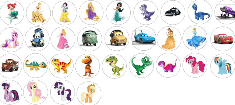 Наклейки круглые картинка на белом фоне без канта: d - 10 см (30 шт), d - 6 см (30 шт), d - 4 шт (30 шт)