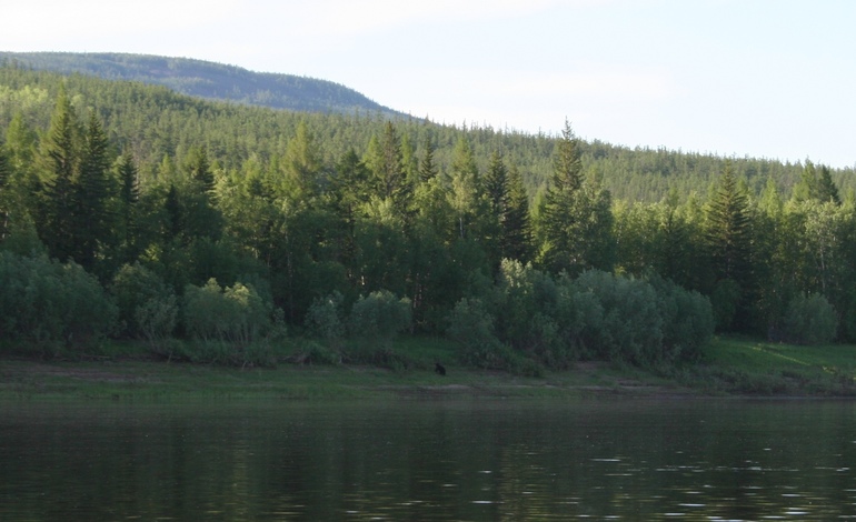 А вот на фотографии и медведь радуется приходу лета! Да-да, тёмное бурое пятнышко на берегу - это медведь)))
