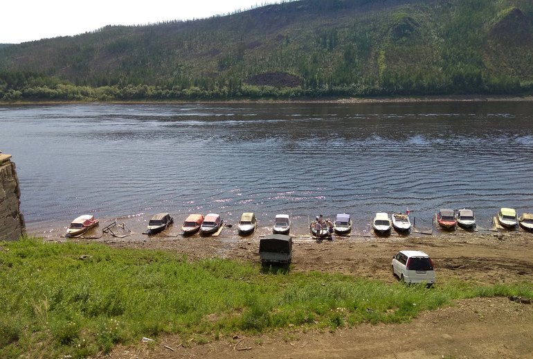 Так как единственная дорога из посёлка ведёт в аэропорт, то купаться мы ездим не на машине, а на лодке. Спускают лодки жители на воду в мае, а вывозят в сентябре, организовывая на летний период вот такие лодочные станции.