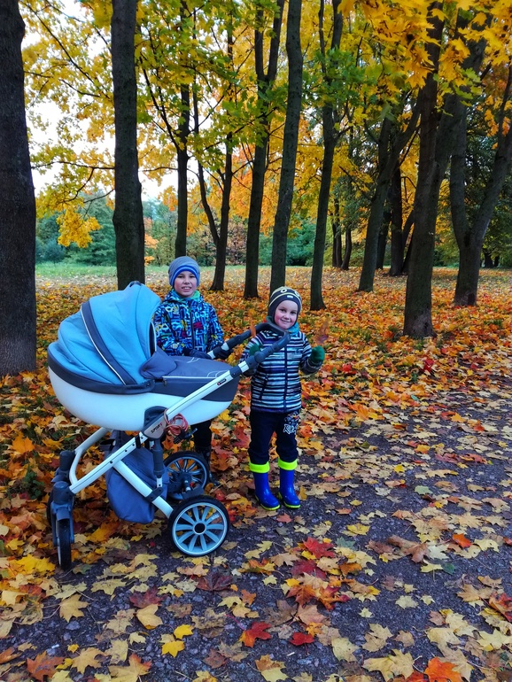 Напоследок размещаю пару фото. На первой фотографии мы с мальчиками гуляем в парке, рядом с домом. А на второй фотографии я после того, как положила Владика и у меня было 10 минут на то, чтобы воспользоваться своей косметичкой.👍