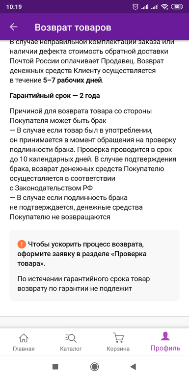 Домострой многодетной семьи (дом и уют)Доброе утро, вернула пылесос по браку в пункт самовывоза 28.10, а в личном кабинете написала заявку на возврат 22.10, сейчас прихожу узнать статус заявки, говорят, что приняли заявку 09.11 и ждать до 45 дней. Я считаю, что это дезинформация меня как покупателя, почему приняли заявку не тем числом, и в личном кабинете написано, что заявку рассматривают до 10 календарных дней, а по факту 45..есть ли у права на такой произвол? Сервис у них, конечно хороший, пока не нужно возвращать деньги