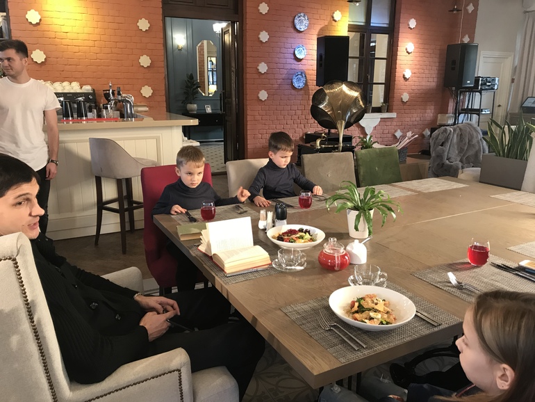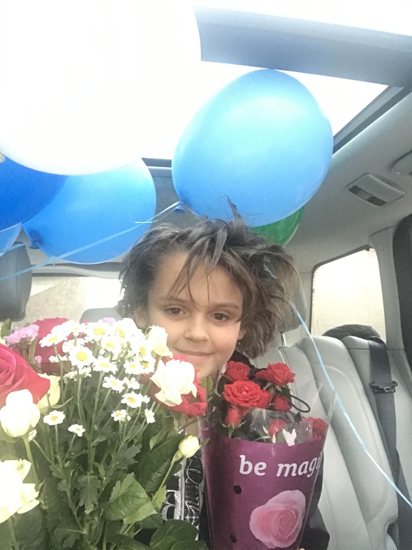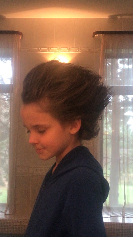 Кирилл. Ему 9 лет исполнилось . И в этот же день в 9 утра в Космосе на ВДНХ был спектакль , поставленный педагогами нашей театральной студии.Встали в 5!!! Прическа у него была 😂