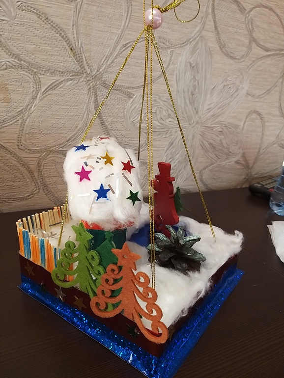 Подвесили за золотую ниточку и, вуаля, поделка готова) по краям приклеили красивый скотч и звездочки)
