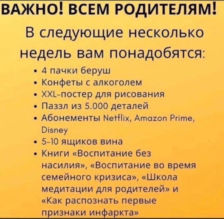 Если ещё и мужа отправят работать из дома, вот тогда я точно свихнусь. Где там мемы на эту тему?