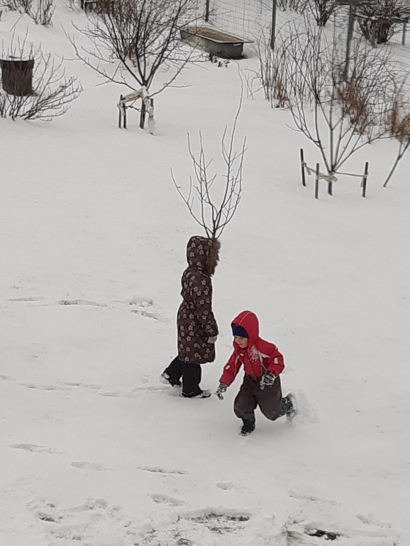 Они вчера вечером так увалялись, реально пришли с мороза такие красные! Температура вечером минус 5 была.
