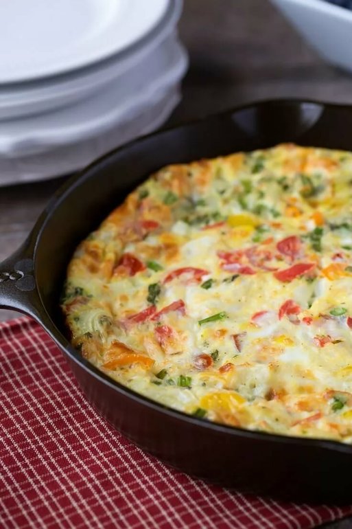 Режем перец болгарский и брокколи, лук, обжариваем с небольшим добавлением соли и специй, потом заливаем смесью из яиц со сметаной, сверху посыпаем тёртым сыром:))