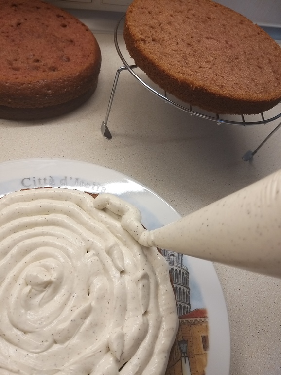 Когда коржики отдохнули и набрались сил. Собираем торт.