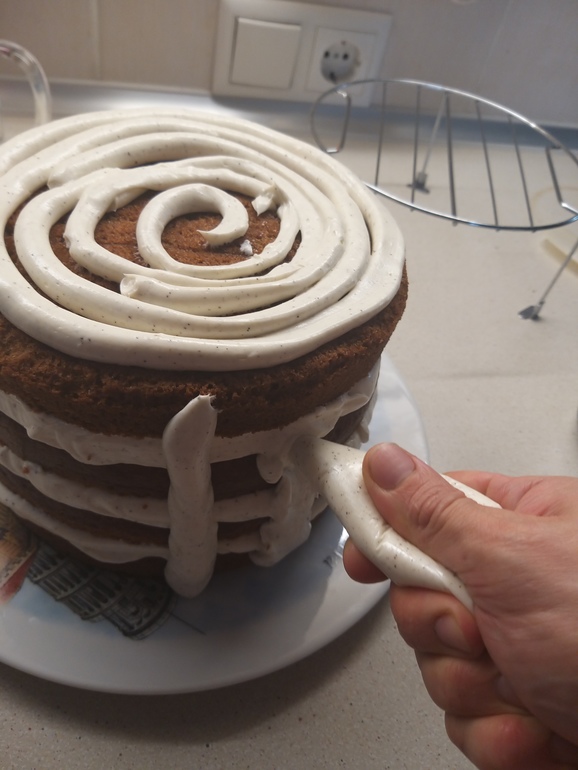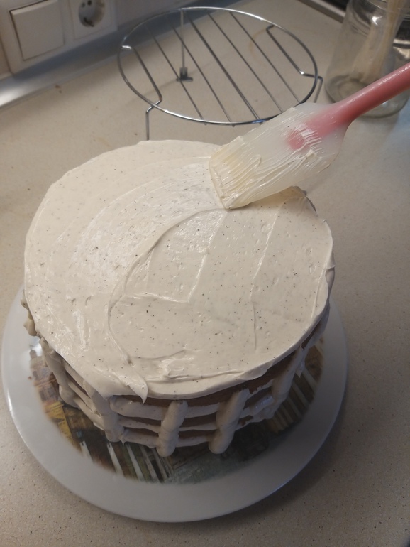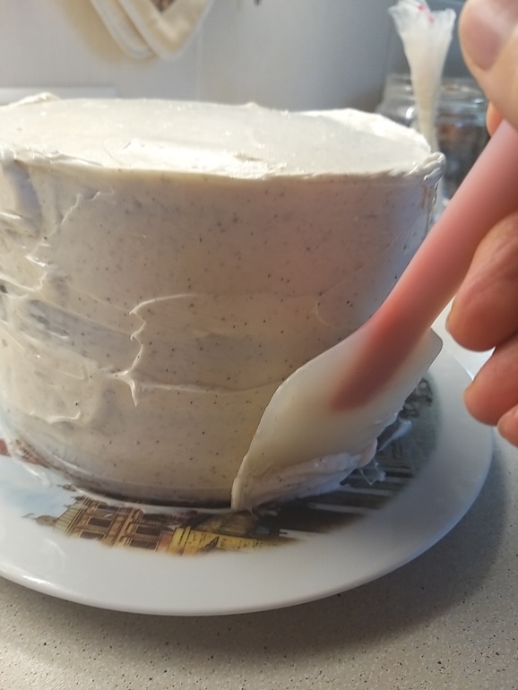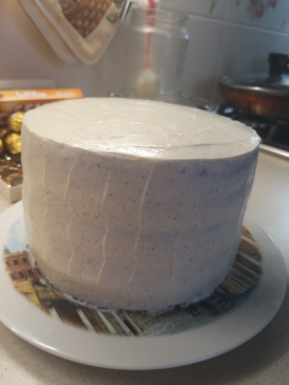 Следующим шагом я выравниваю крем вертикально снизу вверх. Когда меня устраивает внешний вид тортика,