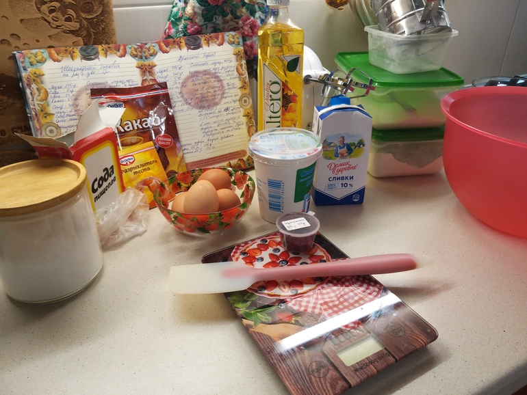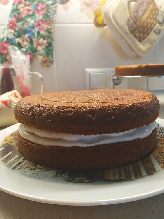 2 день - утро. Пеку коржи. Хотя этот этап можно смело перенести к первому! Но! Торты у меня пекутся более 2х часов!! То есть 1 этап тогда надо начинать днём, а не вечером). К вечеру я "собираю" торт.
