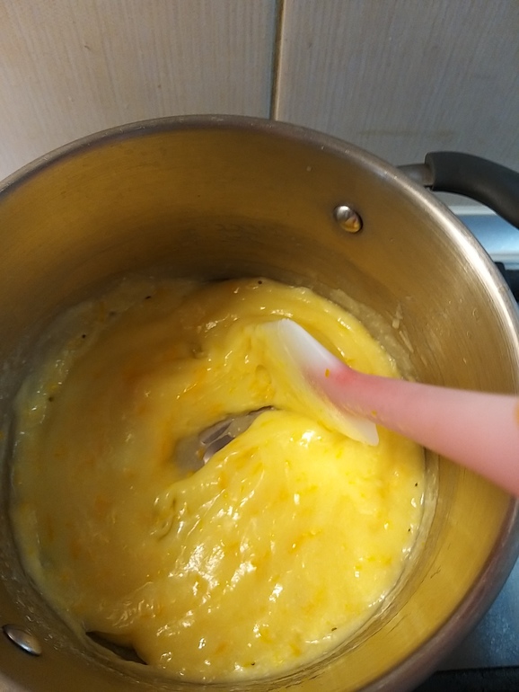 Все ингредиенты смешать в кастрюльке или ковшике и проварить на среднем огне 2-3 мин после закипания. Курд должен заметно загустеть.