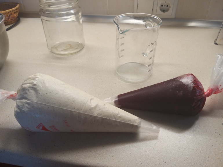 Взбить миксером. Оставляем тесто на 10-20 минут. Готовим форму. Выпекаем также как и Колибри. Остывшие коржи также в пленке храним в холодильнике.