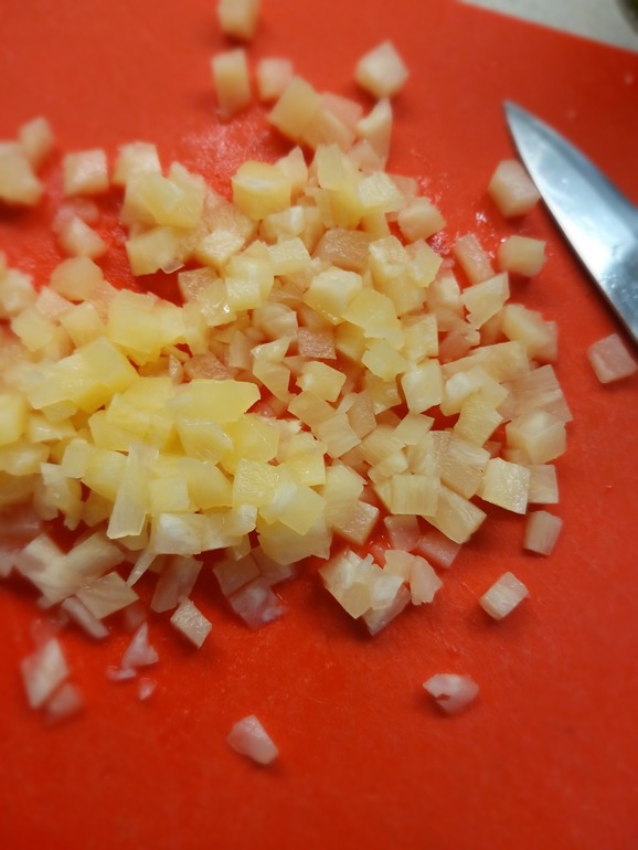 Ананасы я покупала в банке с вкусным сиропчиком) Прежде всего мелко порубите ананасы.