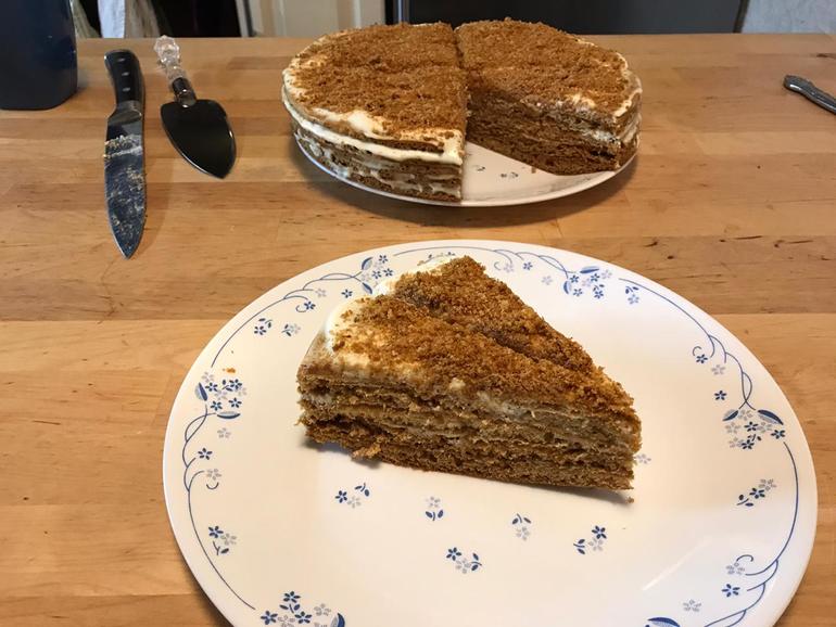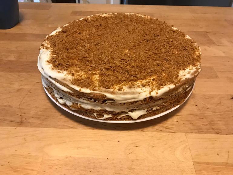 Коржи обрезать по тарелке и промазать кремом не жалей между собой.