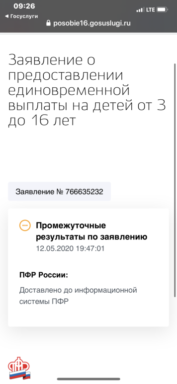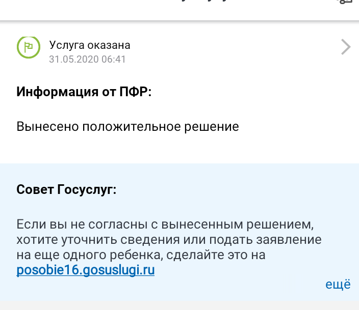 2 июня письмо есть, что услуга оказана. У знакомых втб, тиньков все пришло 1 числа, поэтому дело не в банке. Вчера ПФР прислали 5 тысяч на Веру. А вот с этими 10 не знаю...подожду еще пока.