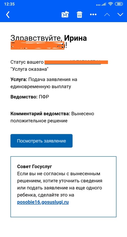 А у меня почему-то так и висит, что «передано в обработку», хотя подала заявление ещё 16 мая