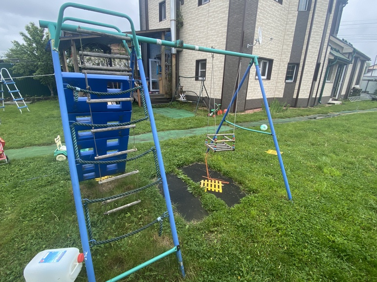 Что понравилось - компактный, 8 кв м должен занять, есть турник для старшего, младшим качеля. Можно играть в баскетбол. И цена радует.