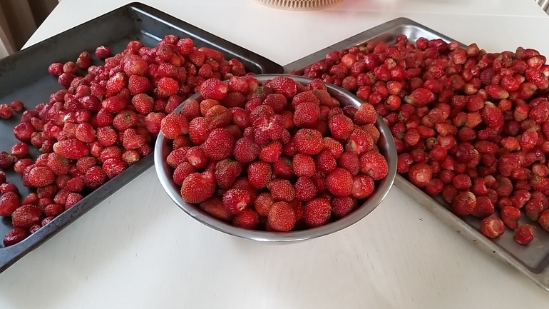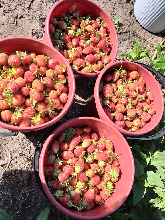 можно было еще столько же собрать. Но надо уметь вовремя остановиться☝️😄В итоге у меня за 1.5-2 часа работы получилось 8.5 кг ягодки-клубнички😋 Но собрать ягодку это ж только начало!) Теперь предстояло с ней сотворить чудо!