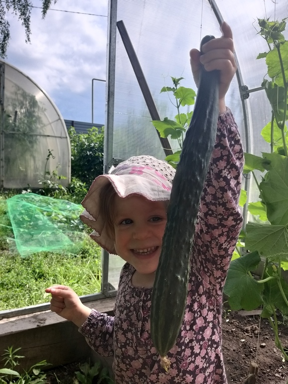 огурец шикарен). блин, я забыла кабачки посадить!))