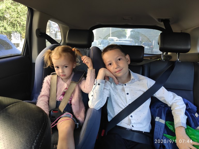 Я встаю в районе шести утра, собираюсь, готовлю завтрак, бужу младших, помогаю собраться им и едем.. Работа у меня относительно близко от дома и по пути как раз и школа, и сад, что очень удобно.. Завожу сначала сына в школу, потом везу в сад младшую.