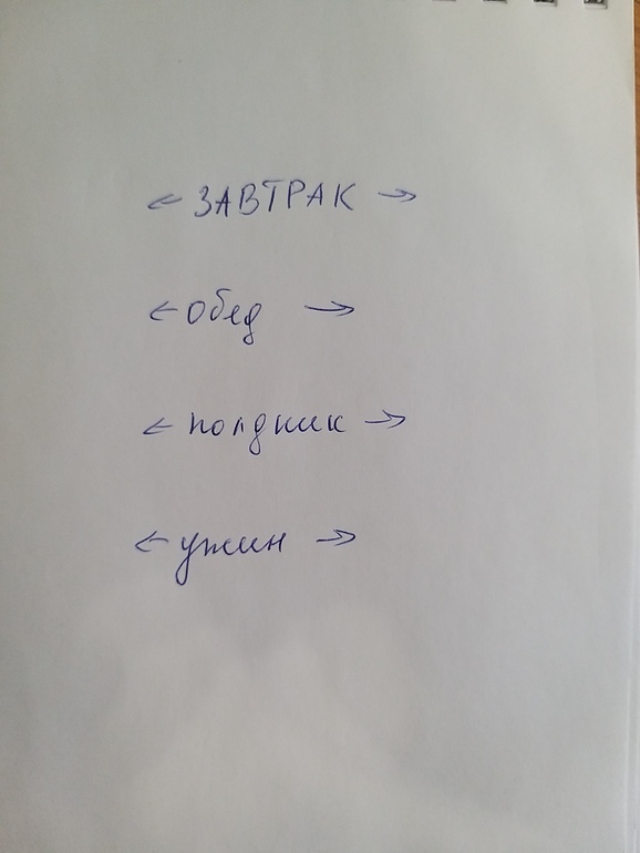 Для начала я им дала лист, где посередине написала: завтрак, обед, полдник, ужин.