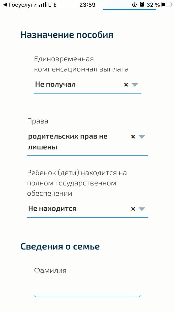 а здесь что? О каком пособии речь? Получали ли мы ранее это пособие за форму?что за сведения о семье -здесь мужа надо вписывать ?