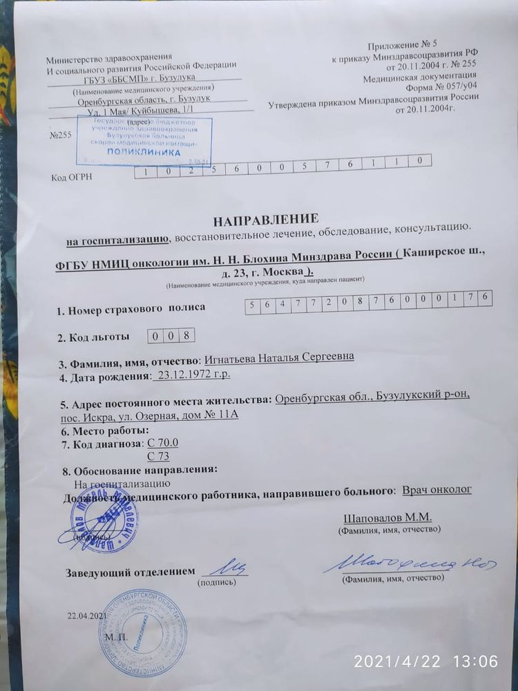 Наталья! Наташенька! Натулечка! Как не назови, а легче ей от этого не станет! Ни на грамм. Потому что очень срочно! А точнее, через 10 дней, ей нужно быть НМИЦ онкологии им. Н.Н. Блохина