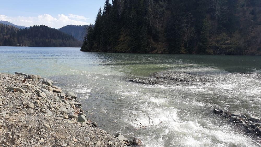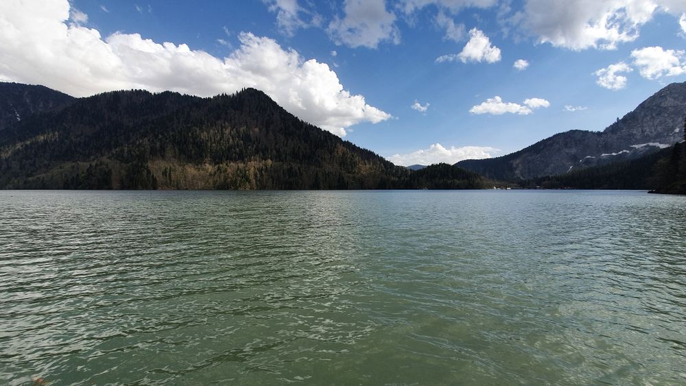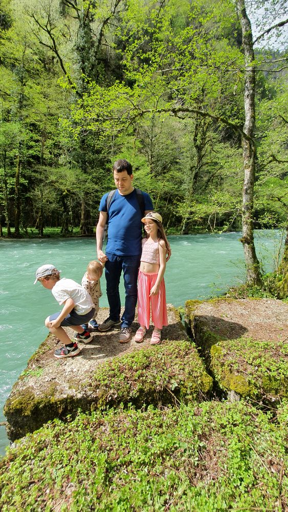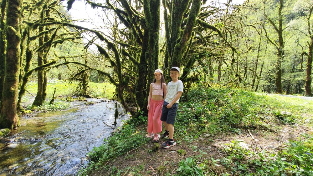 В последние 2 дня решили взять машину напрокат и махнуть в Абхазию. Решение было спонтанное, в ночи спешно что-то почитала, утром сели и поехали. Благополучно забыв снять наличку, мы поехали в экзотичную Абхазию. Буквально за КПП (немного постояли на границе) нас встретил другой мир! Мы были просто ошеломлены! Огромные кипарисы, бирюзовое море вдоль дороги, свободное от волнорезов и всяких настроек-построек сочинских, исполинские сосны, отсутствие дорожных баннеров, неона,заброшенные грустные дома, облупившаяся советская мозаика на остановках. А какая дорога на озеро Рица! Мы были в шоке от такой красоты, еще и весной! Скоро наше восхищение остудило отсутствие налички, там в горах нет связи никакой, навигатор тоже умер на въезде в горы, и добрая старушка просто так угостила старших хачапурями!