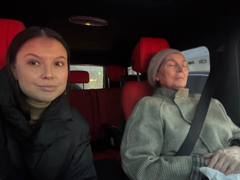 В машине, конечно, же она уснула))) Как ребенок ей Богу )))