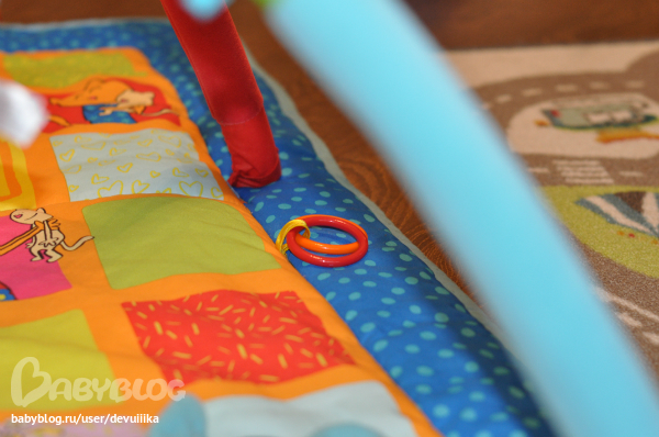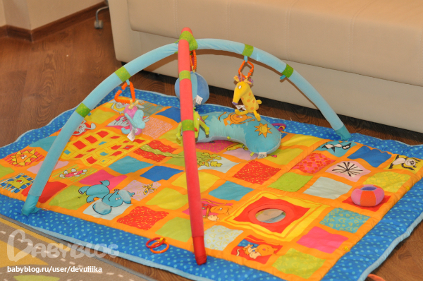 Сам коврик достаточно плотный, чуть позже можно снять дуги и использовать просто как коврик для игр.