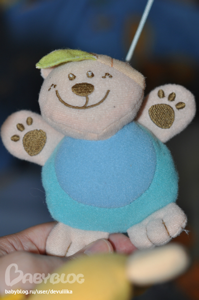 Все игрушки съемные, ими можно играть отдельно или брать с собой на прогулку, закрепляя на прогулочной коляске.