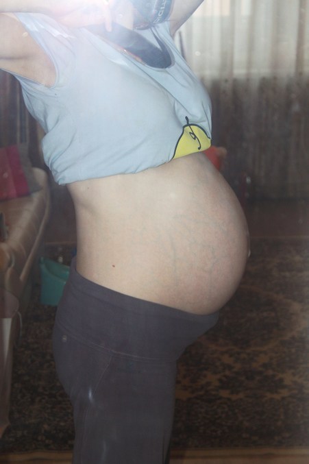 По размерам, если бы там был один малыш, живот на 36 недель. И в ребра давят, и спать ночью плохо стала и ужас в глазах от того, что еще впереди)))